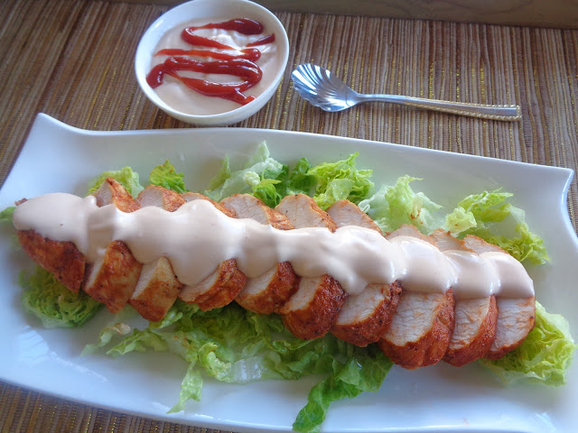 Este tipo de recetas "alangostadas" son frescas y muy sabrosas, son recetas muy conocidas que generalmente se hacen con rape o merluza, pero el solomillo de pavo no podía ser menos con este tratamiento tan sencillo y resultón. También tiene derecho a disfrazarse.